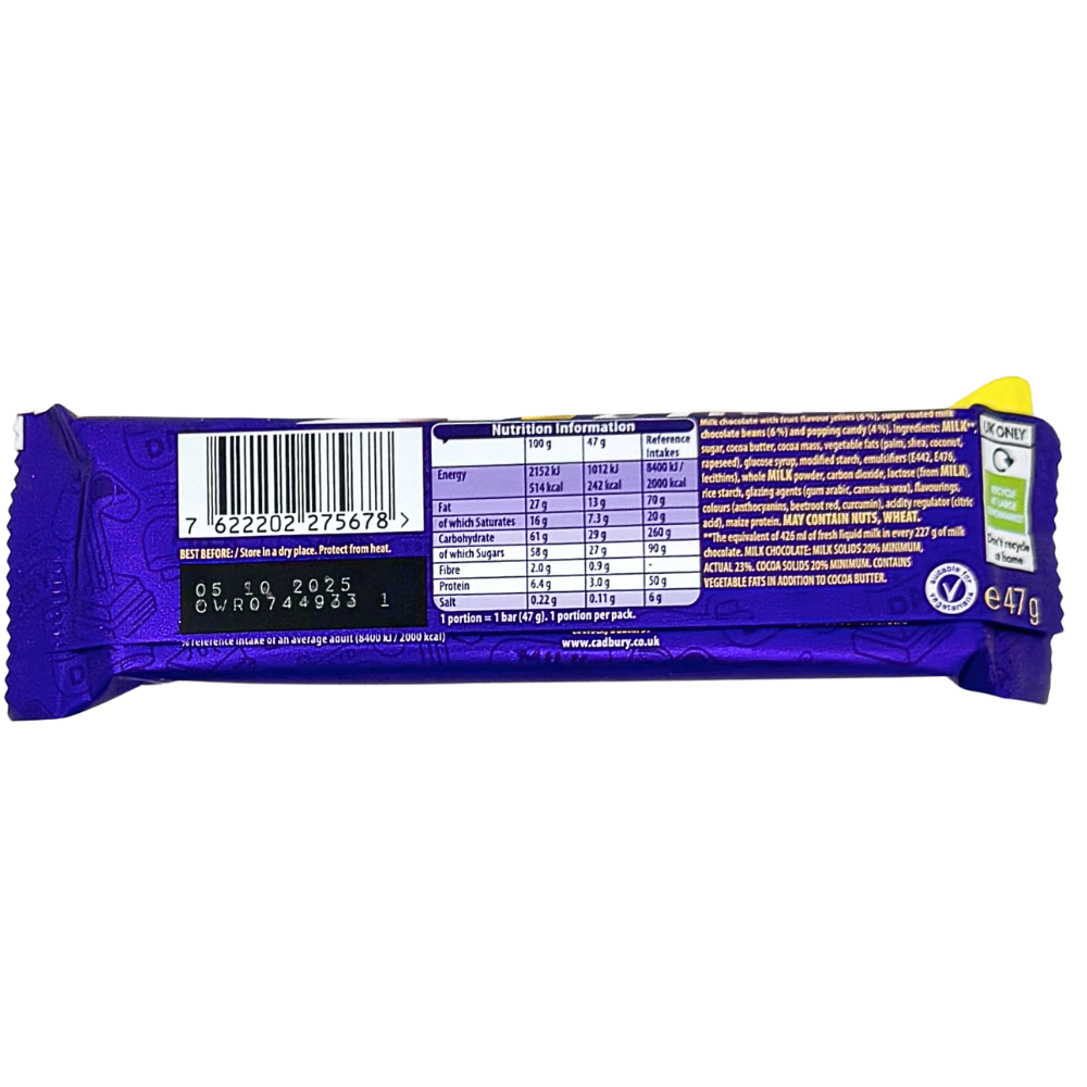 Indulge in the unique taste experience of Cadbury Dairy Milk Marvellous Creations - filled with delicious chunks of candy and chocolate, this 47g bar is a must-try for all chocolate lovers. Enjoy the creamy texture and rich flavor of this delightful treat. Satisfaction guaranteed.