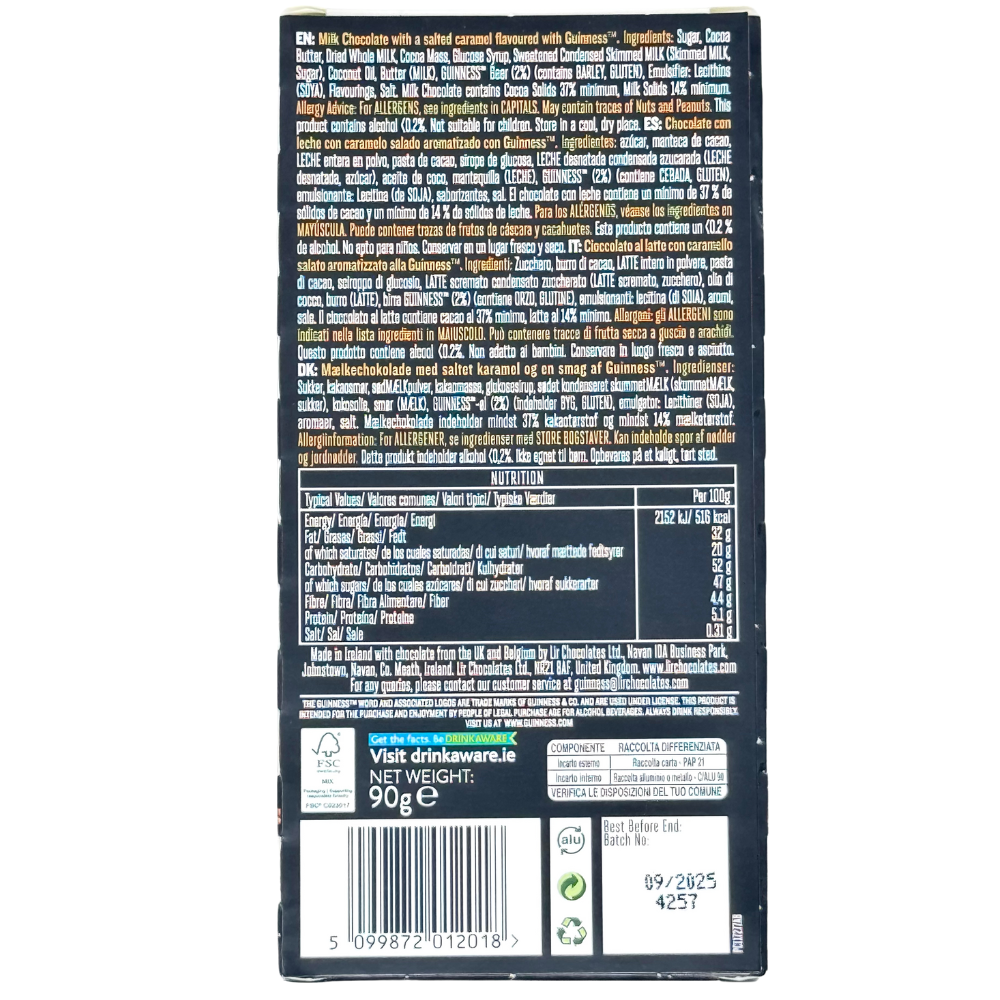 Beginning with a layer of mouthwatering milk chocolate, this chocolate bar offers a middle of a golden serving of flowing caramel flavoured with Guinness.