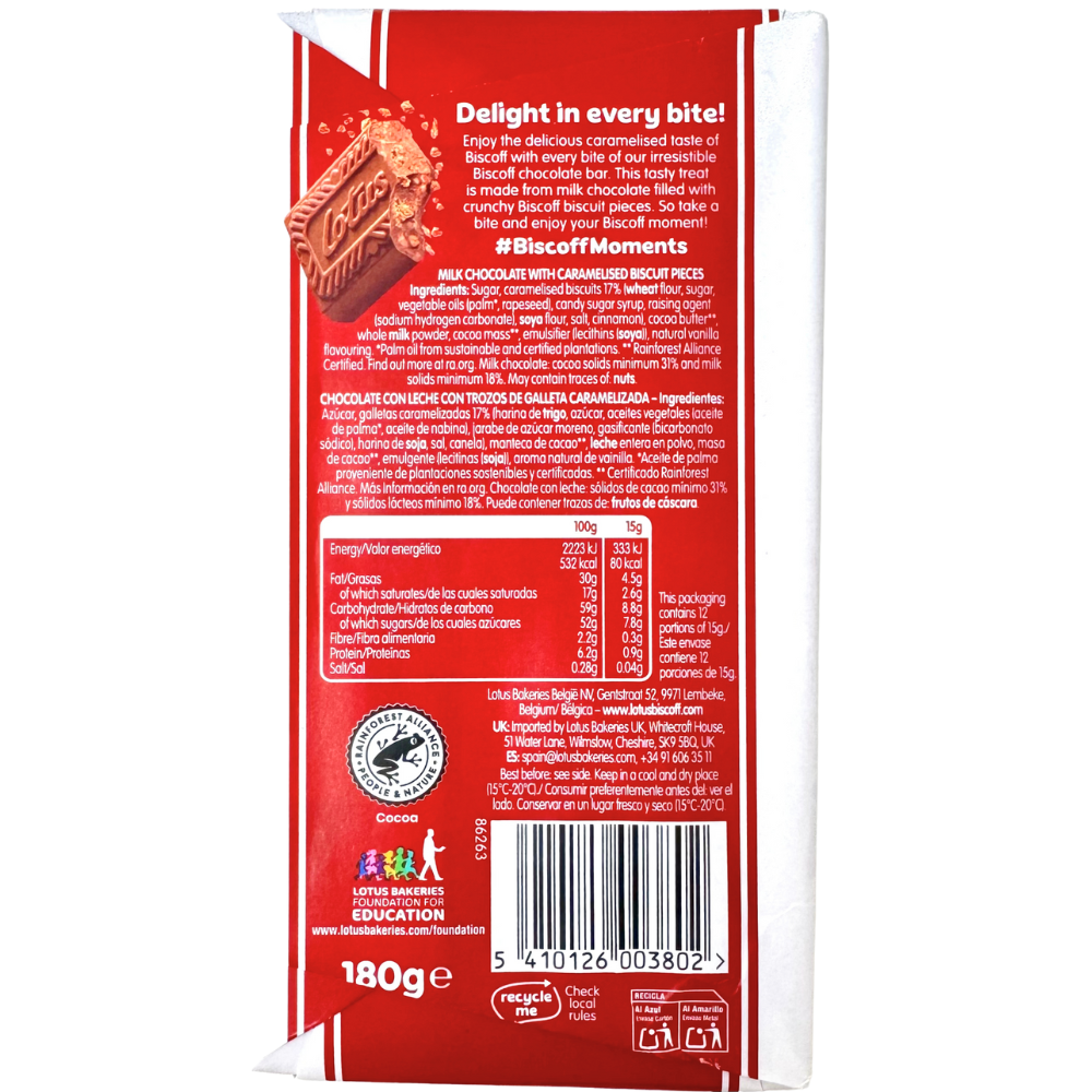 Lotus Biscoff Milk Chocolate Bar (UK) - 180g
