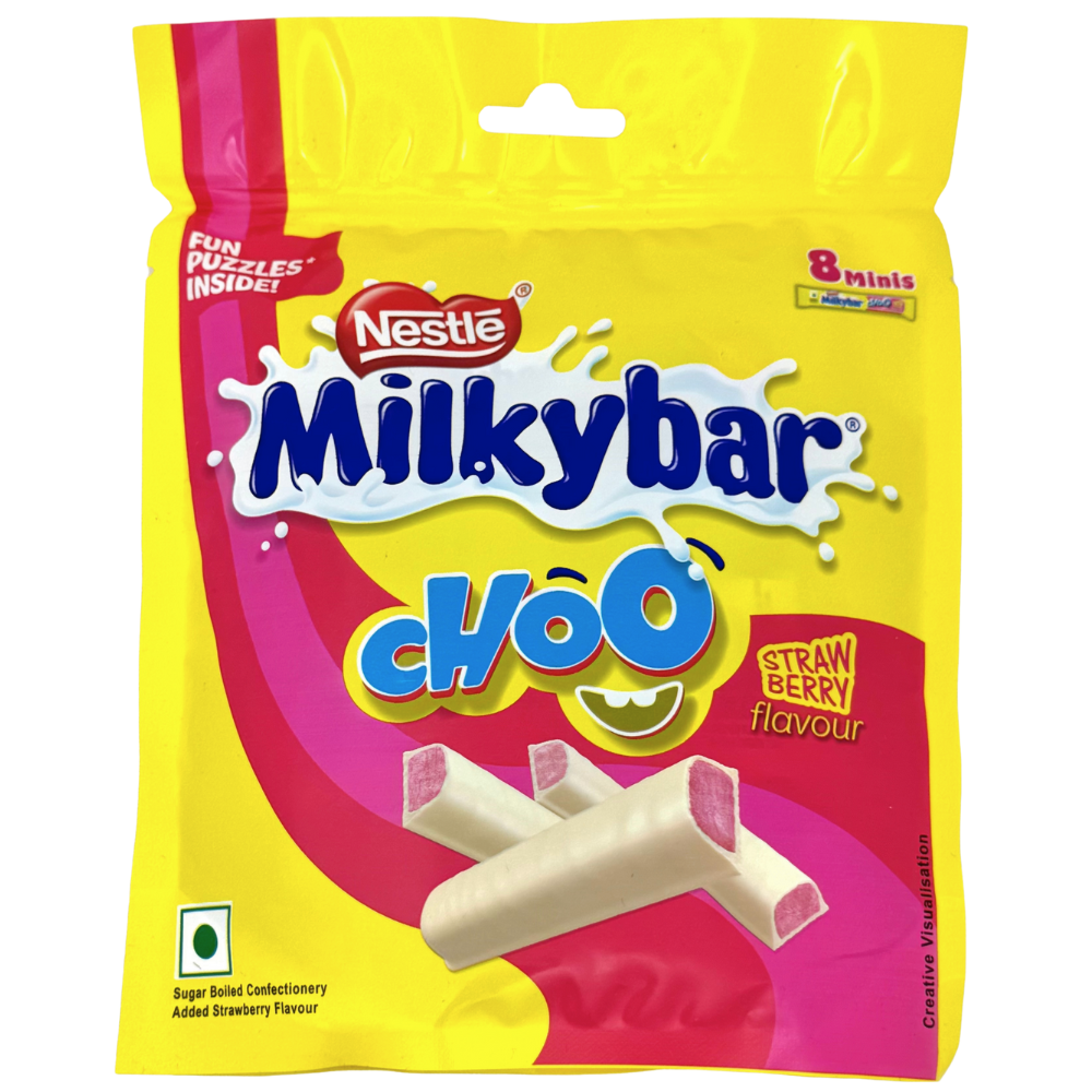 Indulge in the perfect blend of creamy white chocolate and juicy strawberry with Milkybar Choo Strawberry (India) - 80g. Made with real fruit, this treat is ideal for satisfying your sweet cravings without any guilt. Enjoy the delightful combination of flavors in every bite.