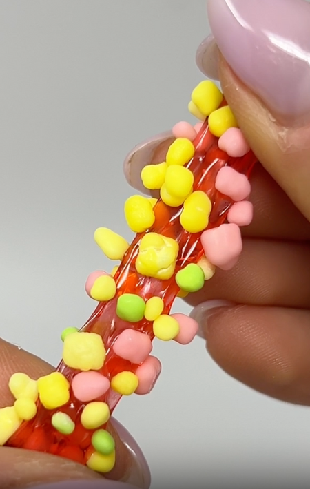 The first bite of Nerds Rope Tropical Candy will have you feeling like you just landed in a tropical resort ready to step your feet in some warm sand. This yellow candy is made to resemble a rope, and fortunately for us it tastes infinitely better than a rope. The Nerds Rope is made of a chewy gummy rope surrounded by tropical Nerds candy that makes it extra sweet and tasty! A bag or two and enjoy them with friends casually, or even make a fun game out of it by racing to see who can finish their candy rope the quickest!