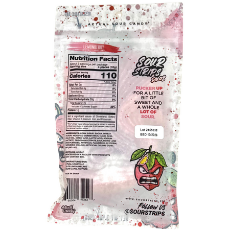 You'll be deliciously astounded with the incredible Sour Strips Lemonberry! This sour candy offers two intense, fantastic flavors in one terrific bite!