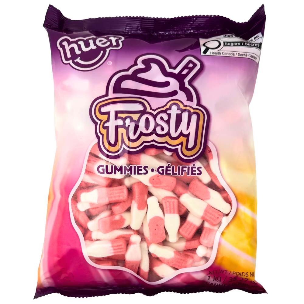 When you think of gummies, you don't often think of frosty… but the Huer Strawberry Frosty Bottles are a game changer! This strawberry candy is shaped like classic milk bottles you’d get delivered to your door back in the day. These sweet gummies taste like a good old fashioned strawberry milkshake, who could resist that? Your taste buds will be begging for more after experiencing the sweet soft texture of the gummy candy.