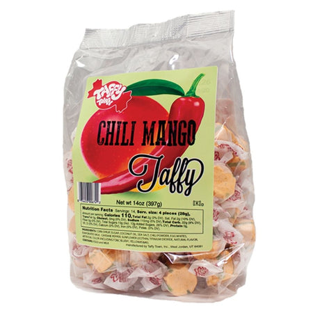 Experience the perfect combination of sweet and spicy with Taffy Town Salt Water Taffy Chili Mango. This classic, old-fashioned candy is made by America's leading salt water taffy manufacturer, ensuring the finest quality for over 100 years. Take a trip down memory lane with every delicious bite.