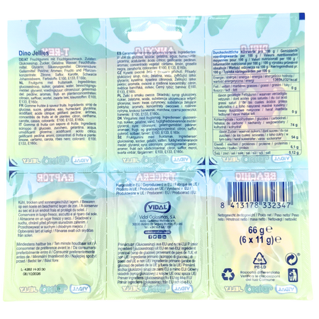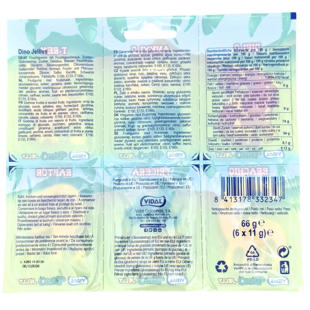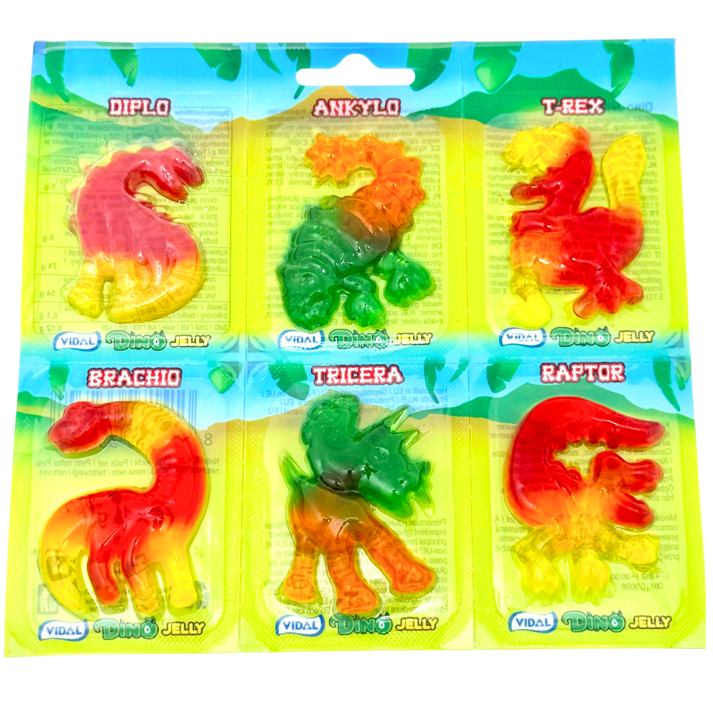 The Vidal Dino Gummi features four dinosaur-shaped gummies. This Dinosaur candy is just waiting to wreak some delicious havoc on your tastebuds!